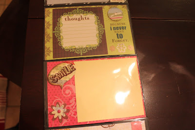 I bought a few of these photo albums about a year ago on clearance and they have just been waiting for me to do something with them. I really should get better about using stuff I have before buying more! Well, the album by itself, while cute, is just too boring for me. I made a mini layout to fit inside each 4x6 page.